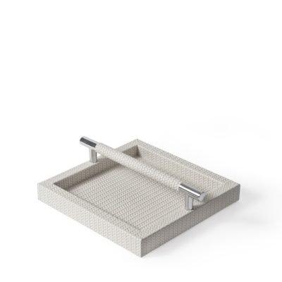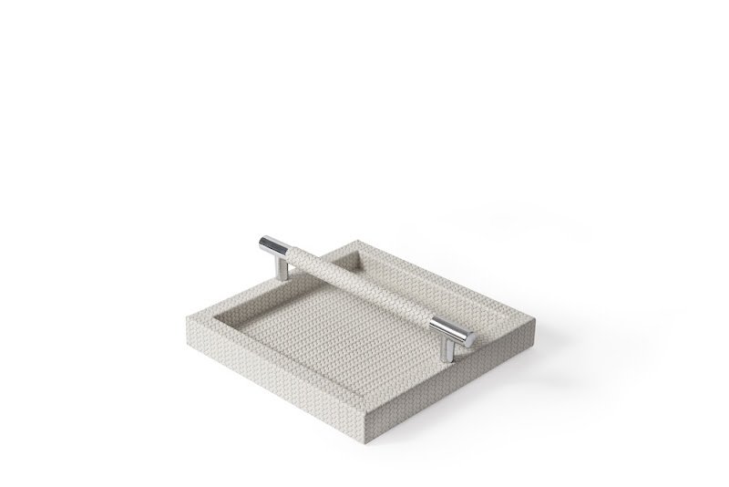Servethouders, uitgevoerd in leer met mat messing of chromen details