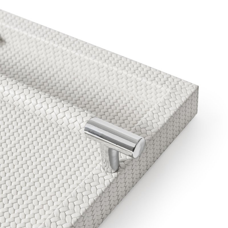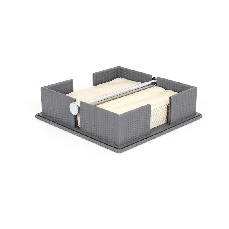 Servethouders, uitgevoerd in leer met mat messing of chromen details