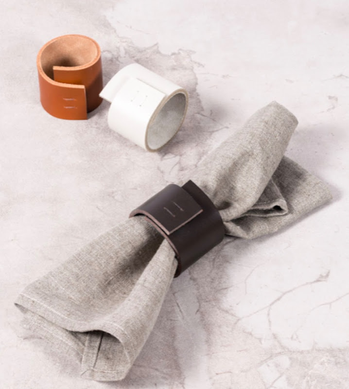 Waterbestendige zadelleren servetring met 2 decoratieve stiksels